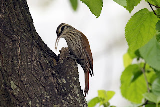 A Narrow-billed Woodcreeper was also cooperative as it searched holes in this tree for good stuff to eat.